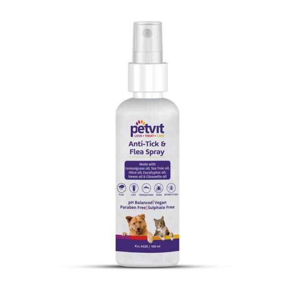 Petvit Anti Tick Flea Spray With Lemongrass Oil Tea Tree Oil Eucalyptus Oil Neem Citronella